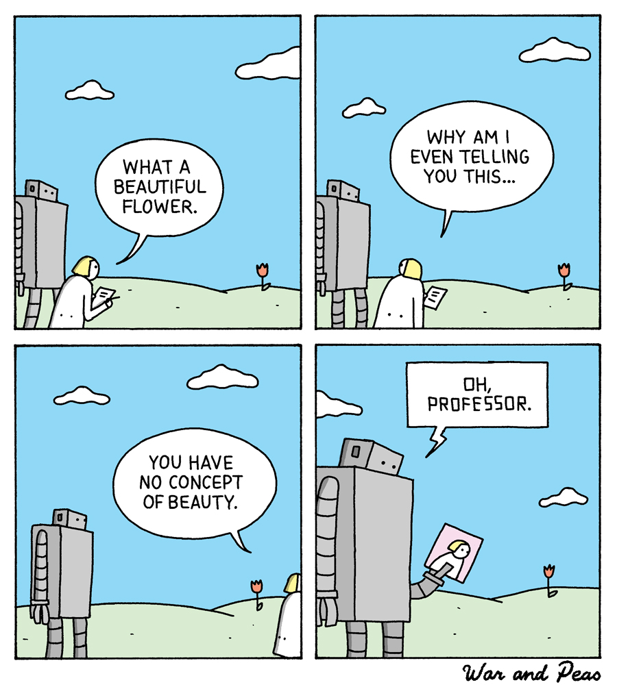 Panel 4: The second person, smiling and walking away, says, "Thanks. I needed that."
