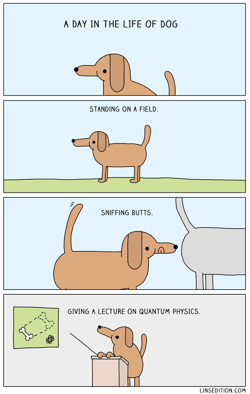 Posted in war and peas and tagged as 4 panel comic, best, black, Cartoon, comic, comics, Comicstrip, dark, day in the life, dog, funny, humor, humour, lins, linsedition, lol, physics, quantum, sarcasm, webcomic.